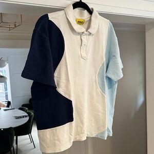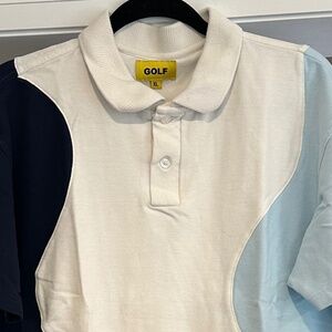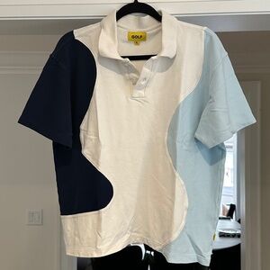 Men's GOLF WANG Navy/Sky Blue/White Ripple Knit Short Sleeve Button-Up Polo Shirt - Size XL