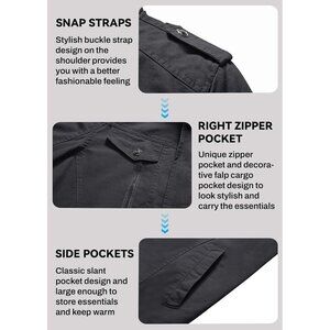 Multi pockets: Our windbreaker jacket is equipped with 5 pockets, 2 side hand pockets, 2 chest pockets and 1 inner pocket, allowing for practical storage options. In addition, the unique chest flap cargo pocket and zipper pocket make it one of your wardrobe winter essentials.