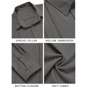 Cuban Guayabera Design --- Mens guayabera shirts features long sleeve, spread collar, button closure, cutout embroidery, relaxed fit. Distinct cuban design makes this shirt more fashionable and classic.