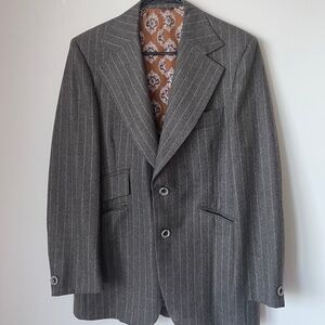 100% Wool Vintage Blazer, incredible lining. There is no size written in the suit, I would say 42 Reg if I have to guess. Beautiful condition