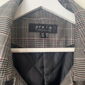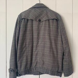 Men’s Grey Plaid Jacket – Trench-Inspired Fit – Size M
