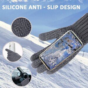 Men's Grey Winter Warm Fleece Lined Anti Slip Knit Touch Screen Gloves