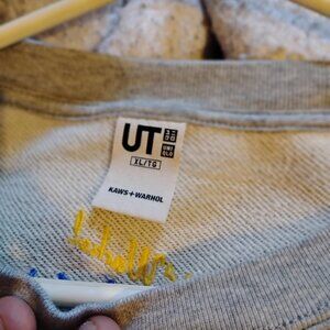 A men's grey size XL sweatshirt from Uniqlo X KAWS X Andy Warhol featuring a KAWS Warhol peel banana mash-up graphic. Shirt has been worn a handful of times but is essentially still in like new condition.