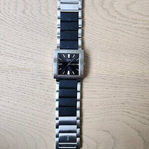 Men's Guess stainless steel and black leather watch. Case diameter: 38 mm, Band width: 30 mm. Water resistant to 99 feet. Precise Japanese-Quartz movement. In good condition with some scratches on the stainless steel that are normal for wear and a small scratch on the face. Needs a new battery. $40 Pick-up is in Kitsilano area of Vancouver near Blenheim/W 10th