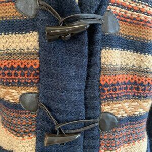 Stay warm with this great sweater with horn tooth toggle buttons.