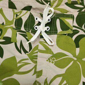 Billabong Hawaiian Print Board & Swim Shorts in Floral Green Colours. Size 40. Great overall preloved condition. 11 inches inseam aprox, 40 inches waist aprox, 23 inches outseam aprox. Has pockets on legs. Very lightweight fabric. Polyester.