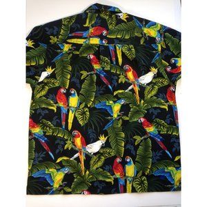 Mens Hawaiian Shirt Bill Blass Tropical Birds Colorful red green yellow- XXL 2XL