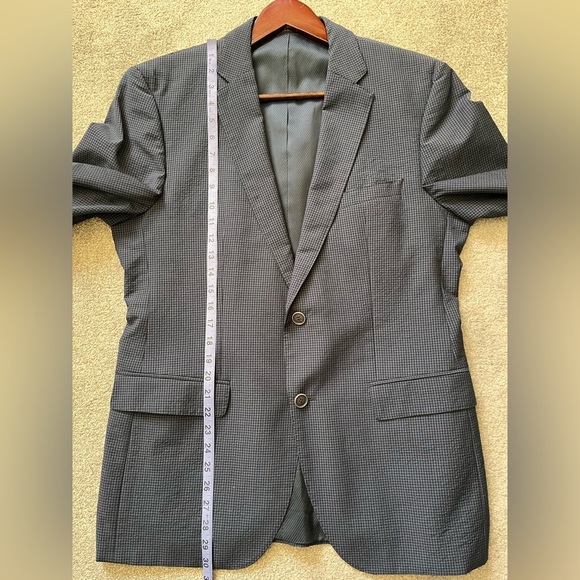 Mens Hugo Boss Virgin Wool Blazer size 40R in excellent like new condition. Such a beautiful texture and pattern to this jacket that will pair well in a formal setting or can be worn casually with a plain t shirt and jeans for a nice Spring 2025 fashionable look! No stains or flaws at all and measurements are listed below and in pictures!