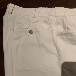 Great workmanship! 100% cotton canvas, in a good weight for Summer. Cuffed leg opening.