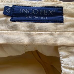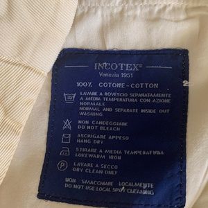Great pant from Famous and Best pant maker INCOTEX from Italy. Light Yellow colour. 100% cotton twill casual dressed pant. Cuffed leg openings. Very good condition. Made in Italy. Italian size 52, but please see the following measurements as Italian sizing differs from US sizing: