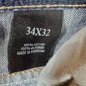 Mens Jeans Relaxed Straight Leg 34W x 32L Whiskered Flap Pocket Twice Brand