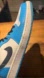 Experience the iconic design of Jordan sneakers with a striking blue and white colorway. These sneakers feature a classic silhouette with breathable perforations and a distinctive color blocking pattern. Perfect for adding a touch of style to any casual outfit. These shoes are practically brand new have been worn about five times, they do have a few scruffs as shown in the video but it’s not even noticeable