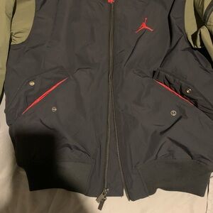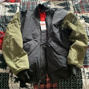 Nike bomber jacket with a black body and olive