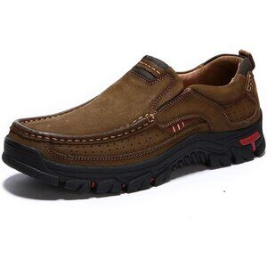 Men's Khaki Slip-on Hiking Shoes Leather Casual Outdoor Walking Sneaker