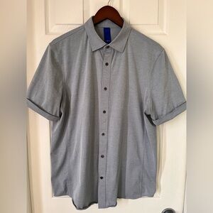 Mens Kit and Ace short sleeve button up shirt size large in good pre owned condition. Measures 23” pit to pit and 28” top to bottom. Nice and lightweight and breathable for all of your summer adventures and on the go activities!