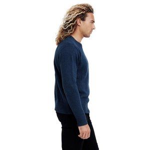 Fitted soft knit hemp sweater, with ribbed detailing and metal logo label.