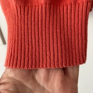 I would describe the colour as coral/orange. The second photo is the best representation of colour.