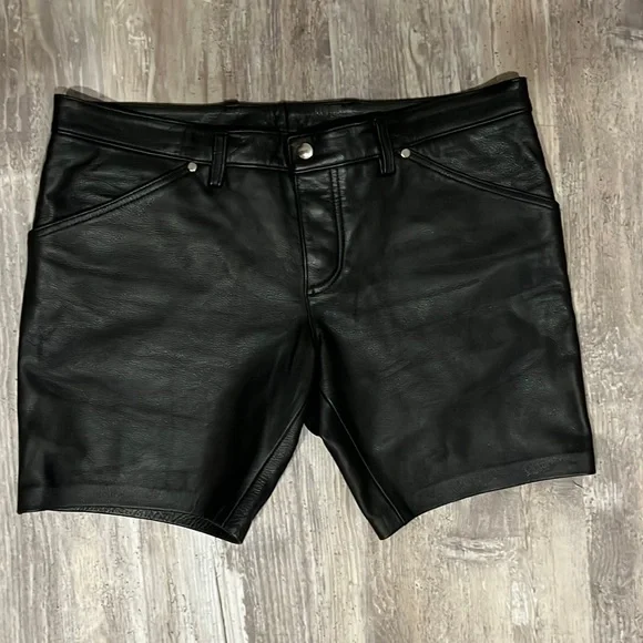 Mint condition men’s leather shorts by Northbound Leather. Jean short style with four pockets, zipper fly.