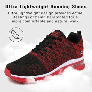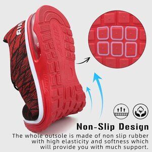 Non-slip Sole Design: Men's athletic running shoes sole made from ultra light natural rubber material,the pattern on the bottom of sole features flexible grooves,strengthen the shoes ability of anti-skid and grip,helping users adapt to any road condition.