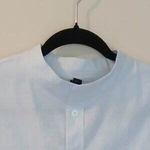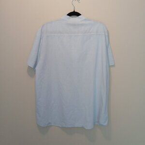 Men's Linen & Cotton Blend Short Sleeve Button Down Shirt Blue Size XL