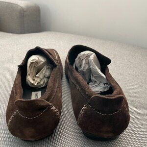 Chocolate Brown Men's Loafers - low cut with white stitching along the edges. Good condition with a bit of wear.