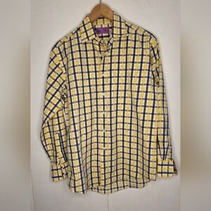 Men's Lorenzo Uomo dress Shirt. Italian made, 15.5 collar, yellow/black check