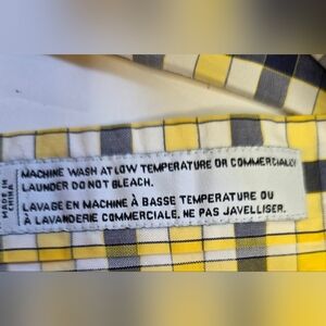 100 % cotton long sleeve button up shirt. like new. yellow, 2 shades of grey, white and black.
