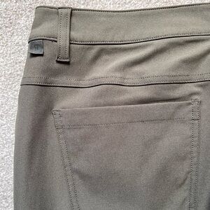 Mens Lululemon ABC pants size 36 with a 33” inseam and 7.5” leg opening classic fit. Colour is a beautiful dark green olive colour. The material is Warpstreme which is soft and stretchy. These are great casual pants or golf pants and very versatile to be used as dress pants too. Back pocket has a zipper. Pants in excellent condition.