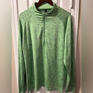 Mens Lululemon Metal Vent Tech 1/2 zip activewear shirt size XXL. Measures 23” pit to pit with some stretch and 31” top to bottom. Beautiful top that is perfect for activewear or casual as it is very breathable. Colour is more green than yellow shown in stock photo.