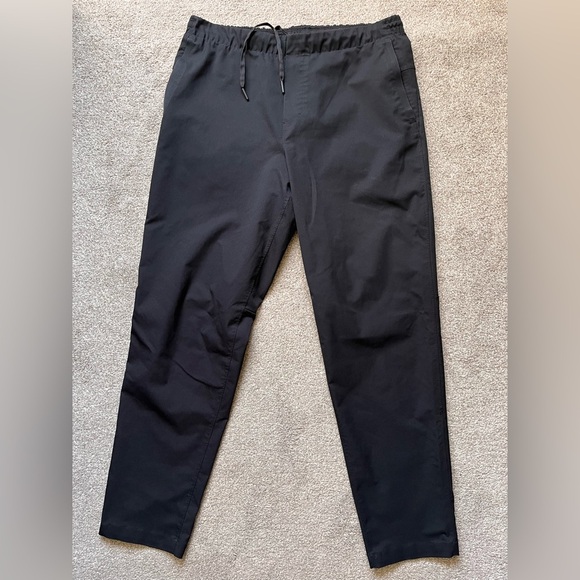 Mens Lululemon New Venture Trousers with the twill fabric size large with a 29” inseam. Pants in excellent pre owned condition with no stains or flaws. Very comfortable and casual pull on pants with an adjustable drawstring waistband and two front zipper pockets as well as a rear zipper pocket! Very comfortable on the go pants or an everyday or activewear pants!