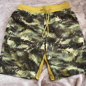Stay stylish and comfortable with these green camouflage shorts. Perfect for casual outings.