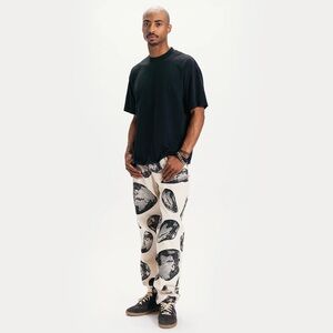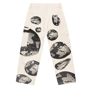 Custom painter's-style pant with bitmap-graphic of the earth.