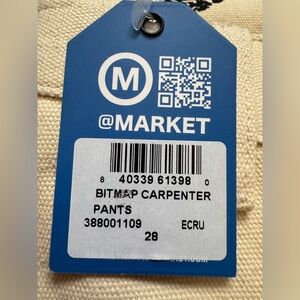 Include utility pockets and a utility loop, consistent with the carpenter style, and have a zip fly with button closure.