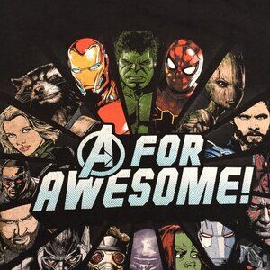 Men's Marvel Avengers Infinity War A is for Awesome Black T-Shirt Boys Size Med