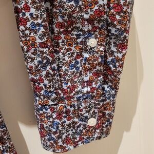 Mens Medium Floral Print J Crew slim fit dress shirt. Cuffs and collar buttons. Material in pictures. Excellent condition. No rips, tears, holes or stains.