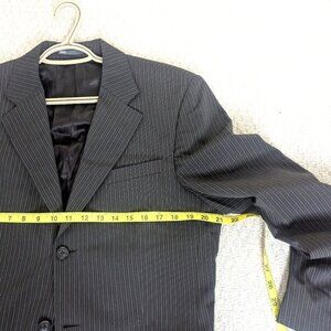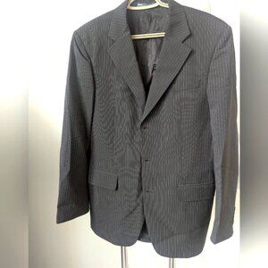 Elevate your style with this classic black pinstripe Suit. Perfect for formal occasions or professional settings in excellent condition. Straight Leg pants with 2 inches in the hem. Dry cleaned and kept with care.
