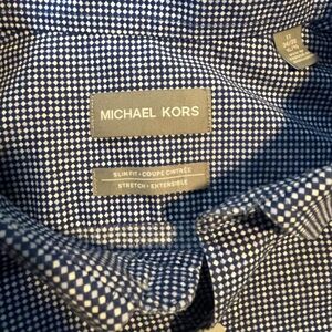 This Men’s Micheal Kors Slimfit long sleeved dress shirt blue & white checker size XL is in excellent condition!