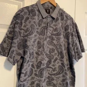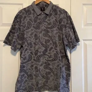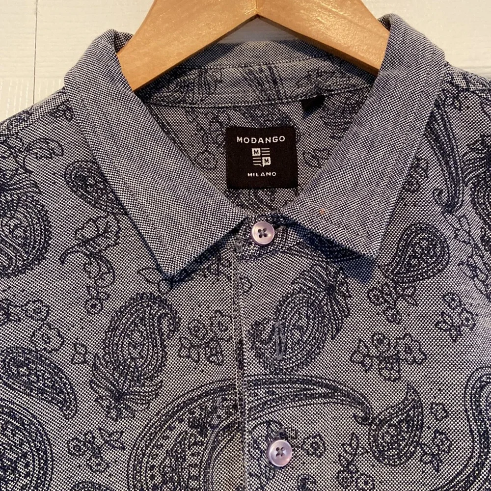 Modango Polo-Denim Blue Paisley polo, classic two button from, Made in Italy. In excellent condition