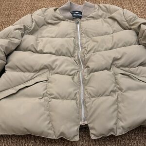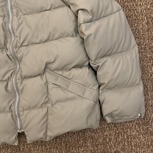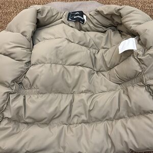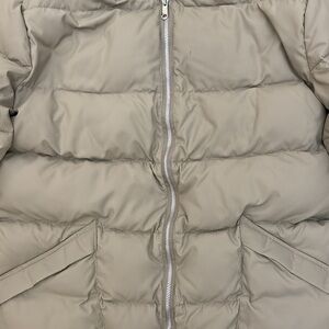 Stay warm and stylish with this beige puffer jacket. Perfect for chilly days.