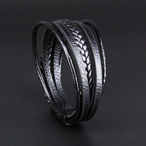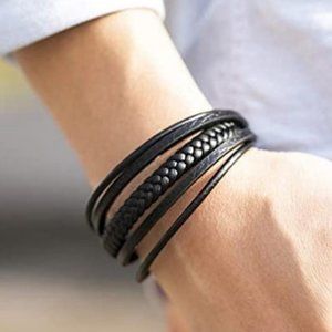Men's Multi-Layer Leather Bracelet With Magnetic-Clasp (Black)