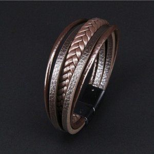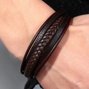 Men's Multi-Layer Leather Bracelet With Magnetic-Clasp (Brown)