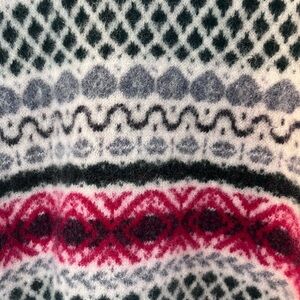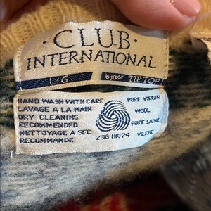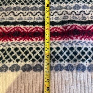 Vintage Tip Top 100% wool/Laine Shetland. It was not hand washed, so it’s not a true large, more like a medium. Measurements in photos. Sleeve length 25”. Embrace warmth and style with this cozy Nordic patterned sweater. Featuring a blend of red, black, gray, green and cream, it's perfect for any casual outing.