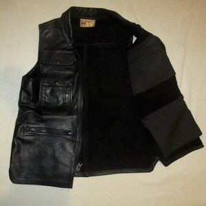 Men's NYC Tino Trevino Leather Den Black Leather Zip-Front Shirt Vest Size L