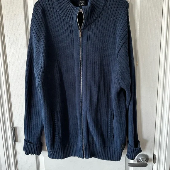 This Calvin Klein Jeans sweater features a classic zip-up design in a rich blue hue, perfect for versatile styling. The ribbed texture adds a touch of sophistication, while the stand-up collar provides extra warmth. Ideal for casual outings, this sweater combines comfort and style effortlessly.