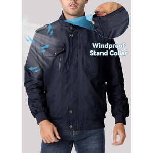Men's Navy Winter Cargo Fleece Sherpa Lined Casual Windproof Bomber Jacket