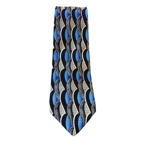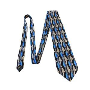 Mens Neck Tie Necktie Black Blue Geometric Silk Abstract Art Deco Long