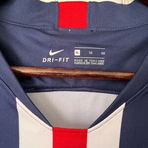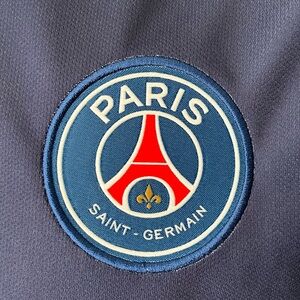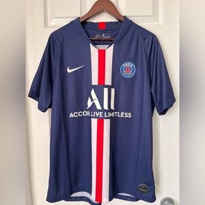 Mens Nike Dri Fit official PSG Paris Saint Germain home soccer kit 2019-2020 jersey in excellent condition. Nike logo and PSG logo are both embroidered. Measures 23” pit to pit and 30.5” top to bottom.