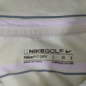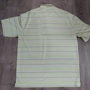 Nike Golf Collared Shirt, short-sleeve. Size Large. Yellow with green and white stripes. In excellent condition!