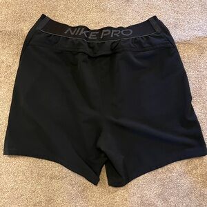 Mens Nike Pro athletic shorts 7” inseam size XL. In excellent pre owned condition no rips stains or flaws. Has a drawstring at the waist and a side zipper pocket. Great pair or durable and comfortable athletic shorts for your summer activities.