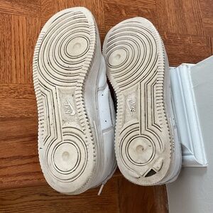 Men’s White Nike Air Forces Size 9 White colour Right shoe torn inside & worn out underneath